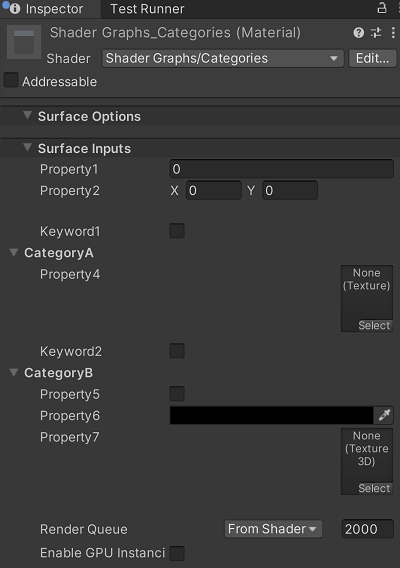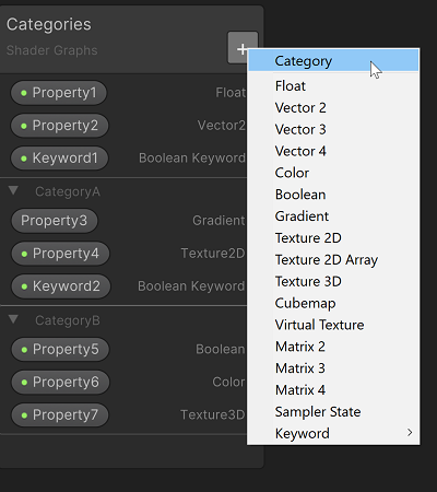 To make the properties in your shader more discoverable, organize them into categories. Expand and collapse categories to make the Blackboard easier to navigate.