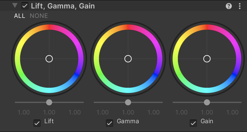 Lift Gamma Gain uses the Volume framework, so to enable and modify the lift, gamma, or gain of the render, you must add a Lift Gamma Gain override to a Volume in your Scene. To add Lift Gamma Gain to a Volume: