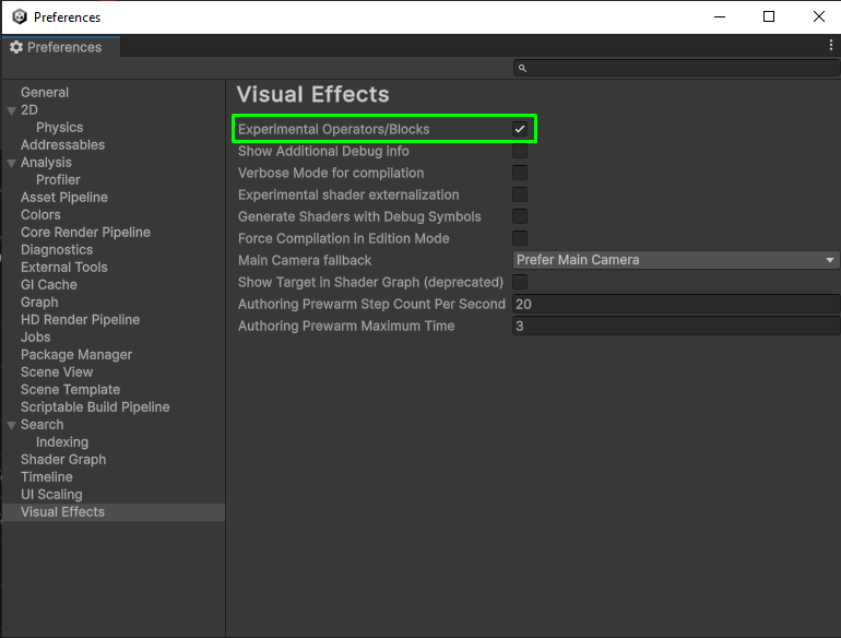 This page lists Visual Effect Graph features that are in an experimental state in version 16. For details, see Experimental features.