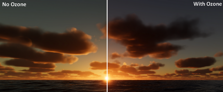 Additionally, the PBR sky now includes an ozone layer as part of the atmosphere model. This is especially noticeable when the sun is close to the horizon.