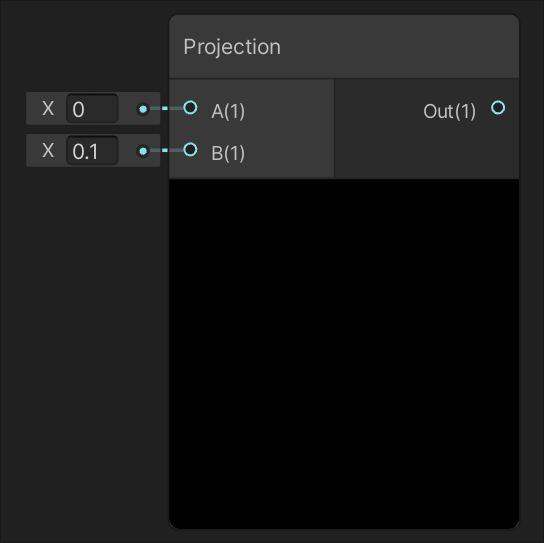 | Returns the result of projecting the value of input A onto a straight line parallel to the value of input B. |