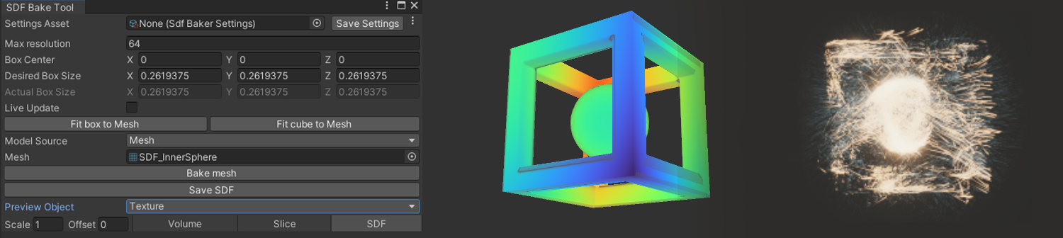 This version includes the new Signed Distance Field (SDF) Bake Tool. To access it, navigate to Window > Visual Effects > Utilities > SDF Bake Tool. You can use this tool to quickly turn meshes and prefabs into SDF assets which you can use to create various effects, such as custom collisions, or to make particles conform to a particular shape.