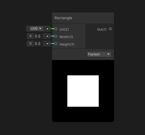 Generates a rectangle shape based on input UV at the size specified by inputs Width and Height. Generates a rounded rectangle shape based on input UV at the size specified by inputs Width and Height. The input Radius defines the radius of each corner.