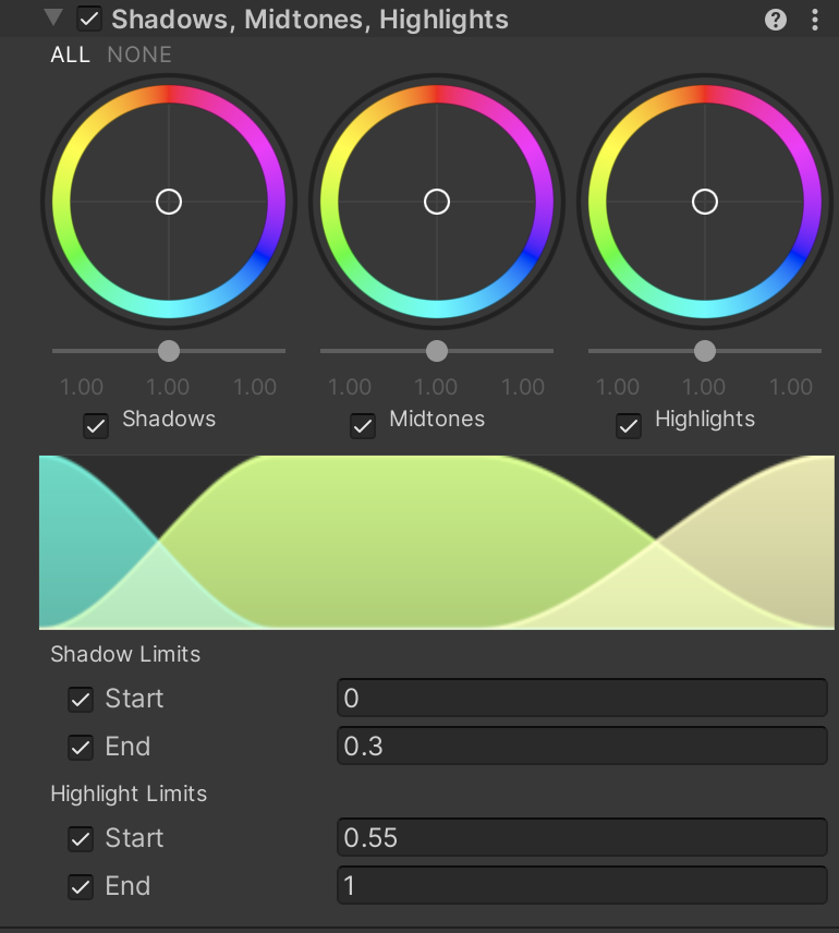 Shadows Midtones Highlights uses the Volume framework, so to enable and modify the shadows, midtones, or highlights of the render, you must add a Shadows Midtones Highlights override to a Volume in your Scene. To add Shadows Midtones Highlights to a Volume: